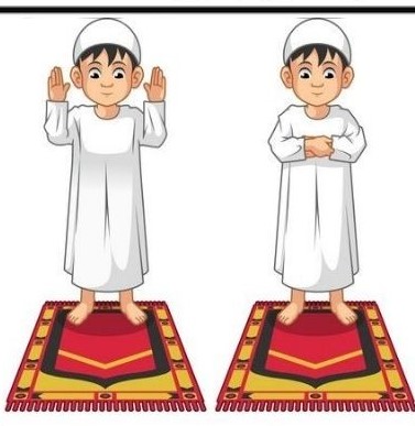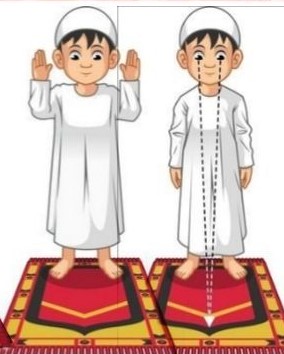 samtidigt som du lyfter dina händer med handflatorna riktade Rak'ah fram. Händerna ska höjas till samma nivå som axlarna eller öronen.